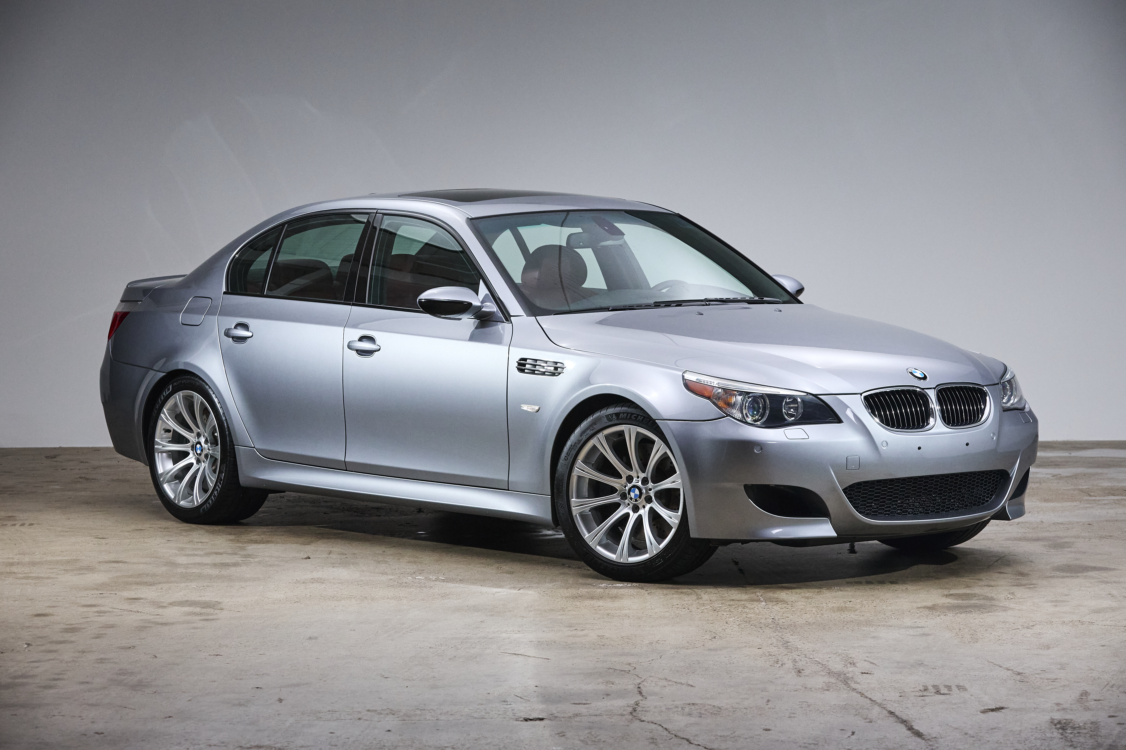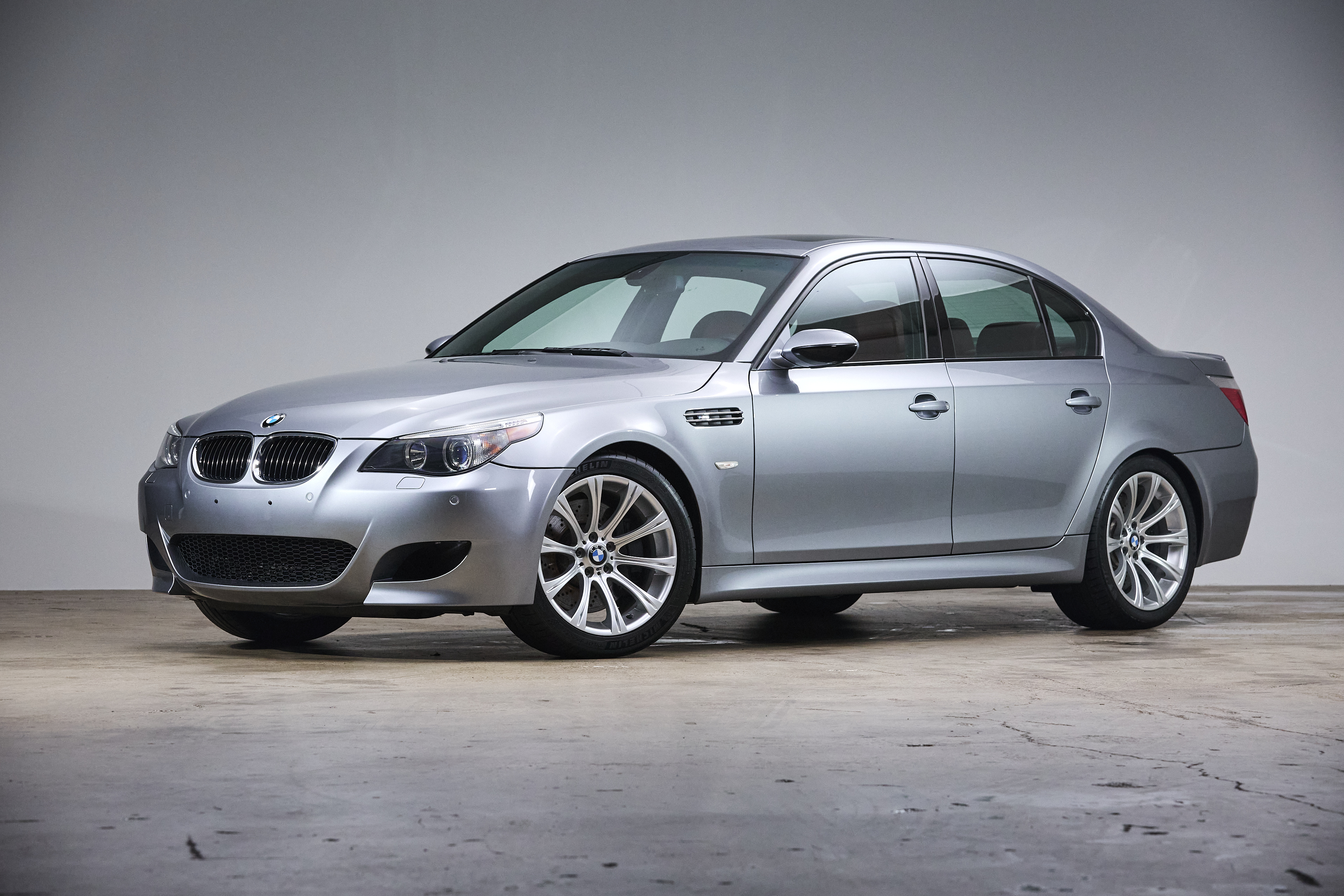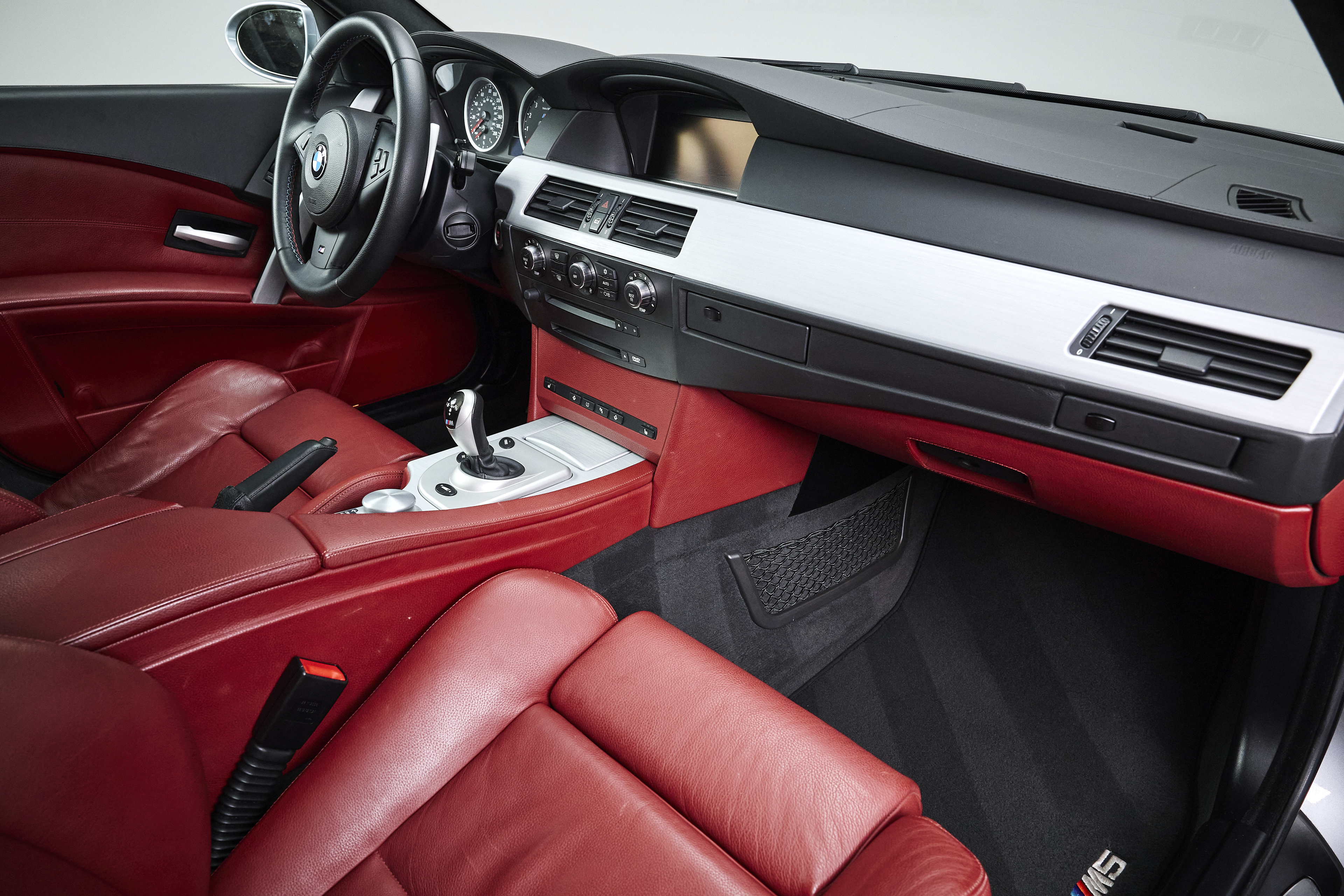 This 2006 BMW M5 is finished in Silver Grey Metallic over Indianapolis Red Merino leather, a striking and classic combination that highlights the car’s understated exterior and vibrant, motorsport-inspired interior. Showing 46,100 miles, this example presents as a well-maintained and highly original car, retaining its factory configuration throughout.