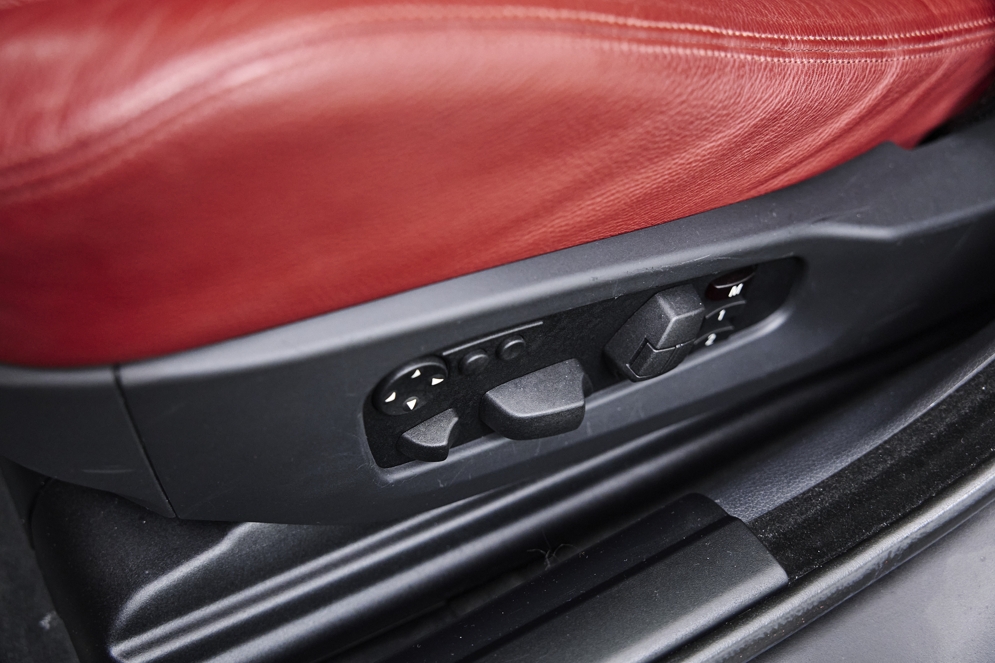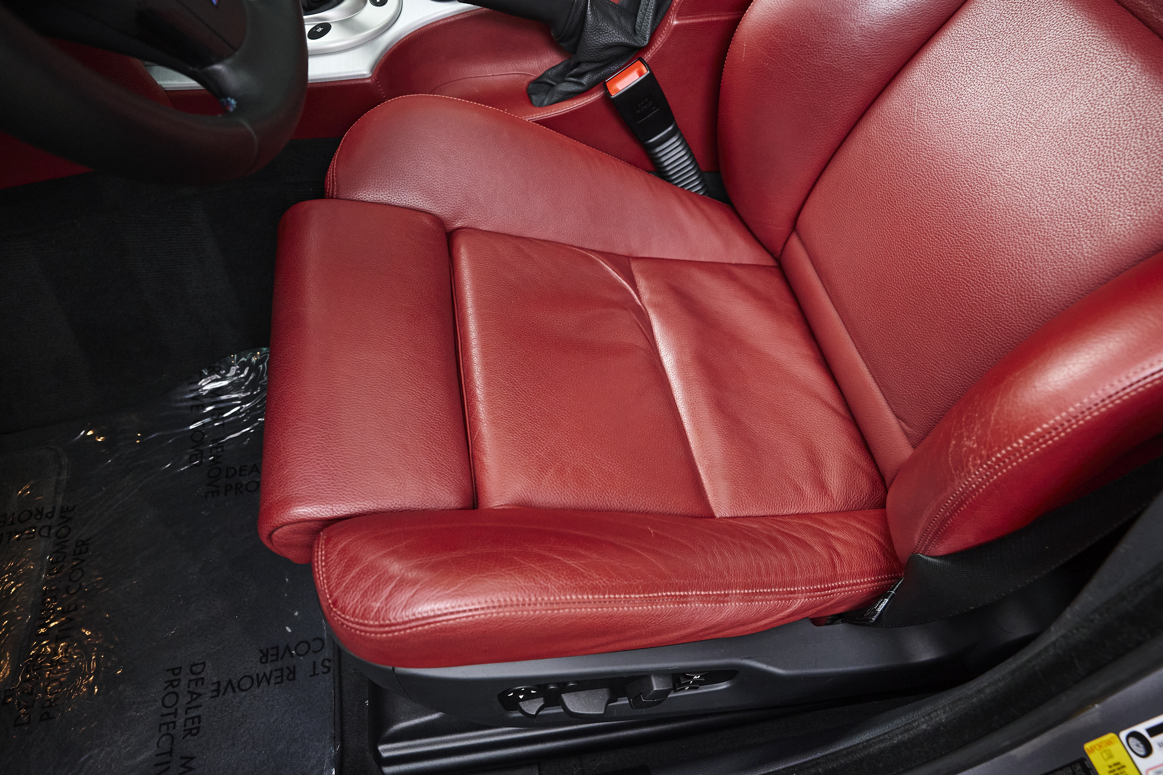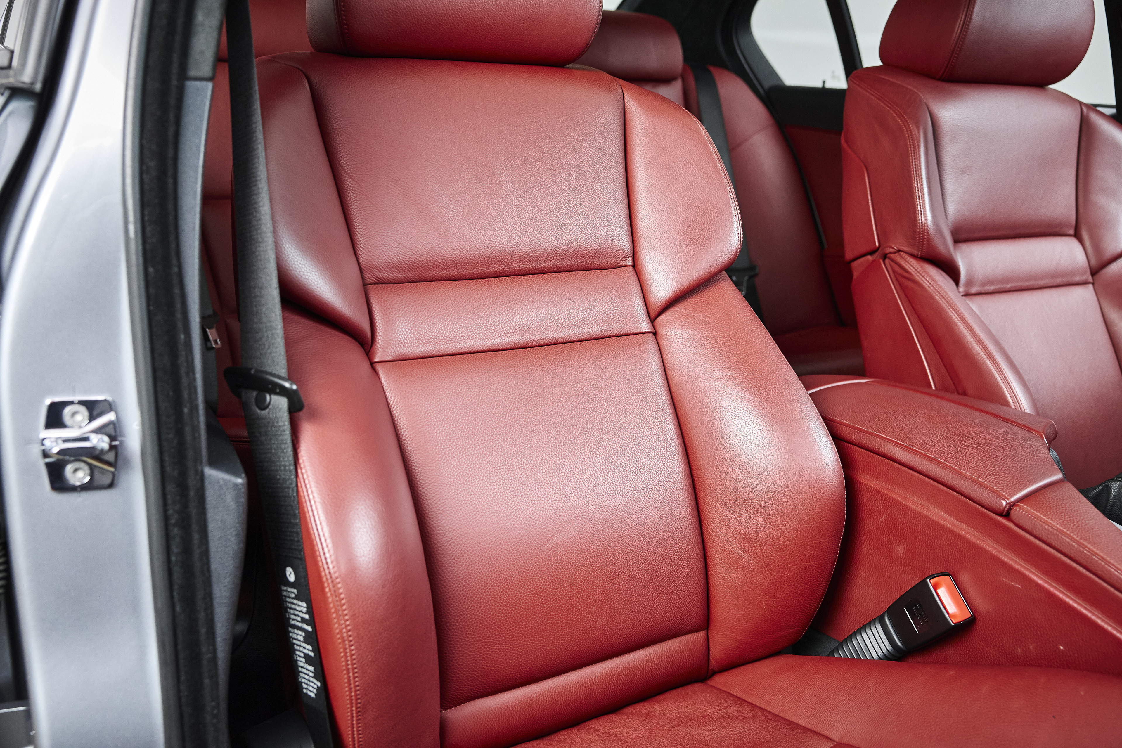 The interior is particularly noteworthy, featuring Indianapolis Red Merino leather paired with Alu Shadow brushed interior trim, creating a clean and purposeful cockpit. Factory options include Active Seat Backrest Width Adjustmentfor both driver and passenger, enhancing comfort and support during spirited driving. A subtle M rear spoiler adds a touch of factory styling without altering the car’s original character.