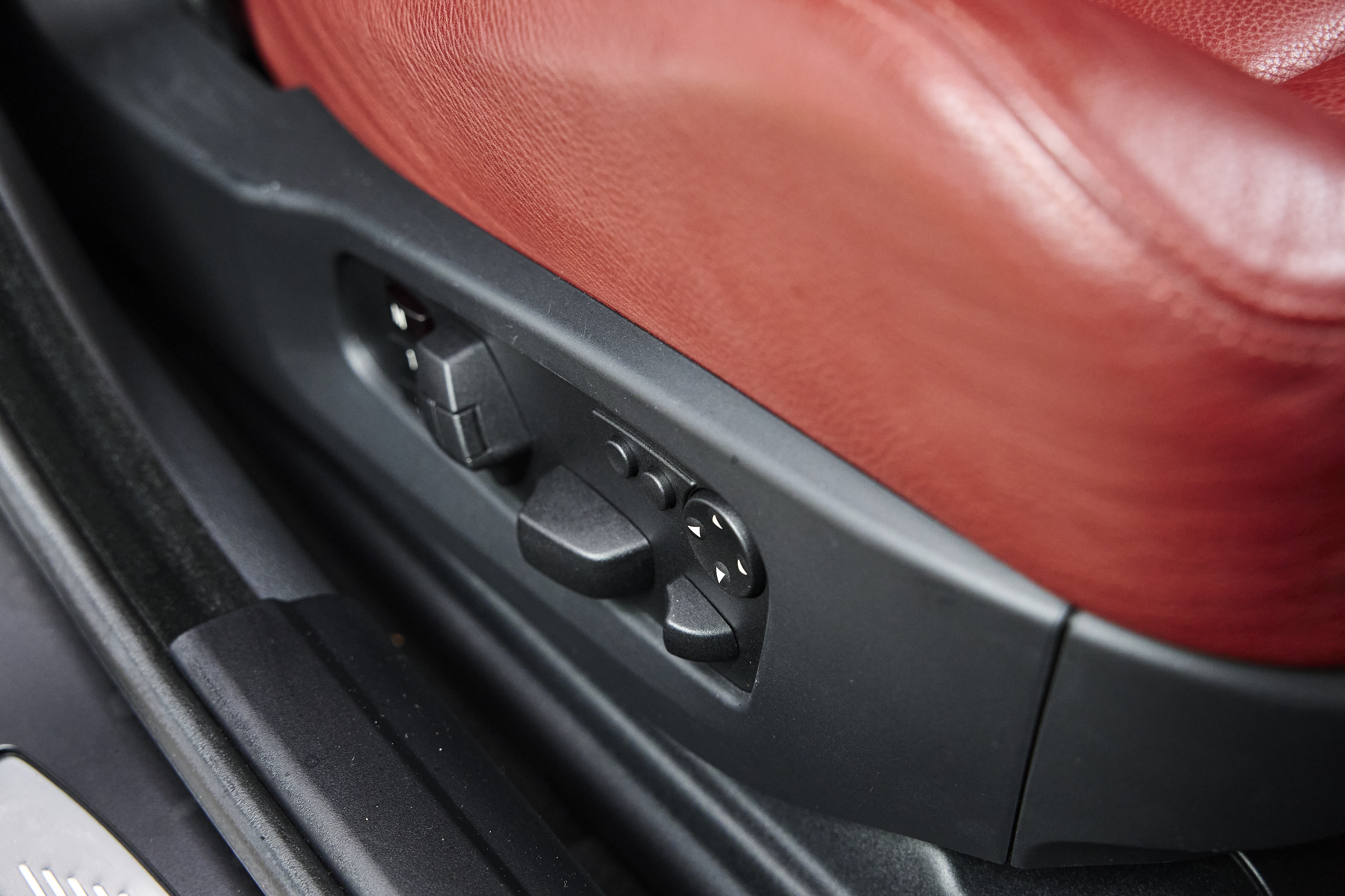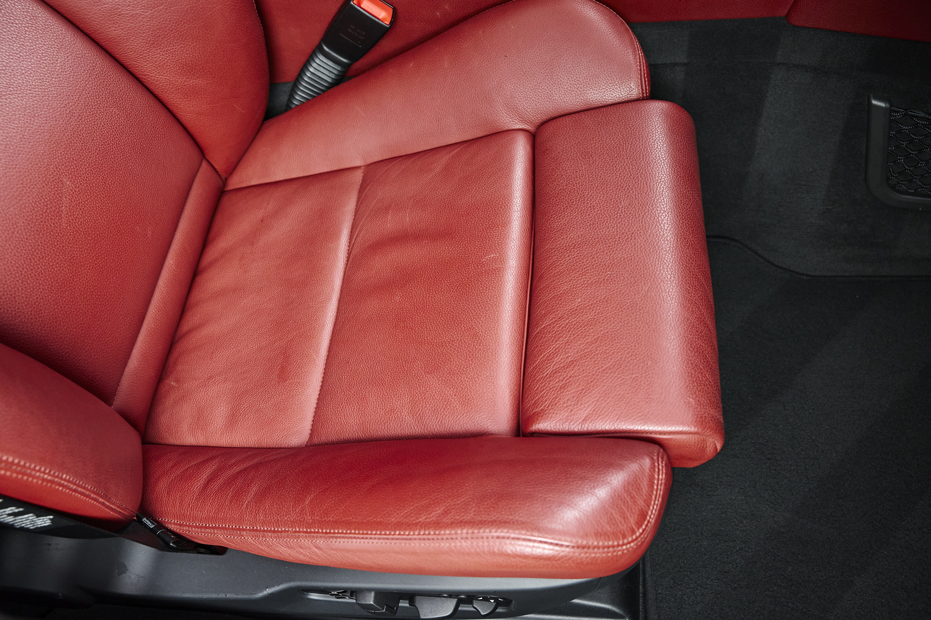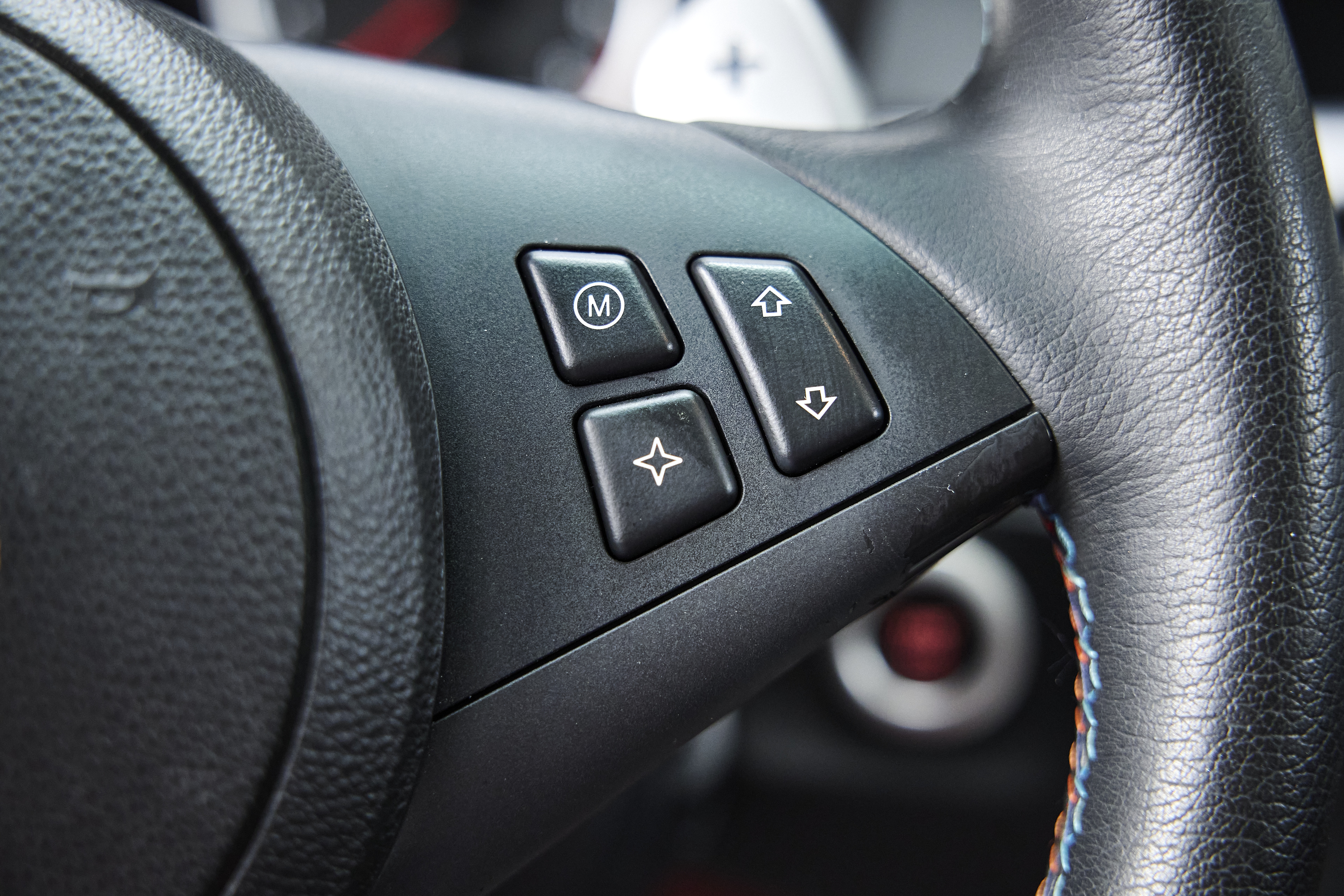 The interior is particularly noteworthy, featuring Indianapolis Red Merino leather paired with Alu Shadow brushed interior trim, creating a clean and purposeful cockpit. Factory options include Active Seat Backrest Width Adjustmentfor both driver and passenger, enhancing comfort and support during spirited driving. A subtle M rear spoiler adds a touch of factory styling without altering the car’s original character.