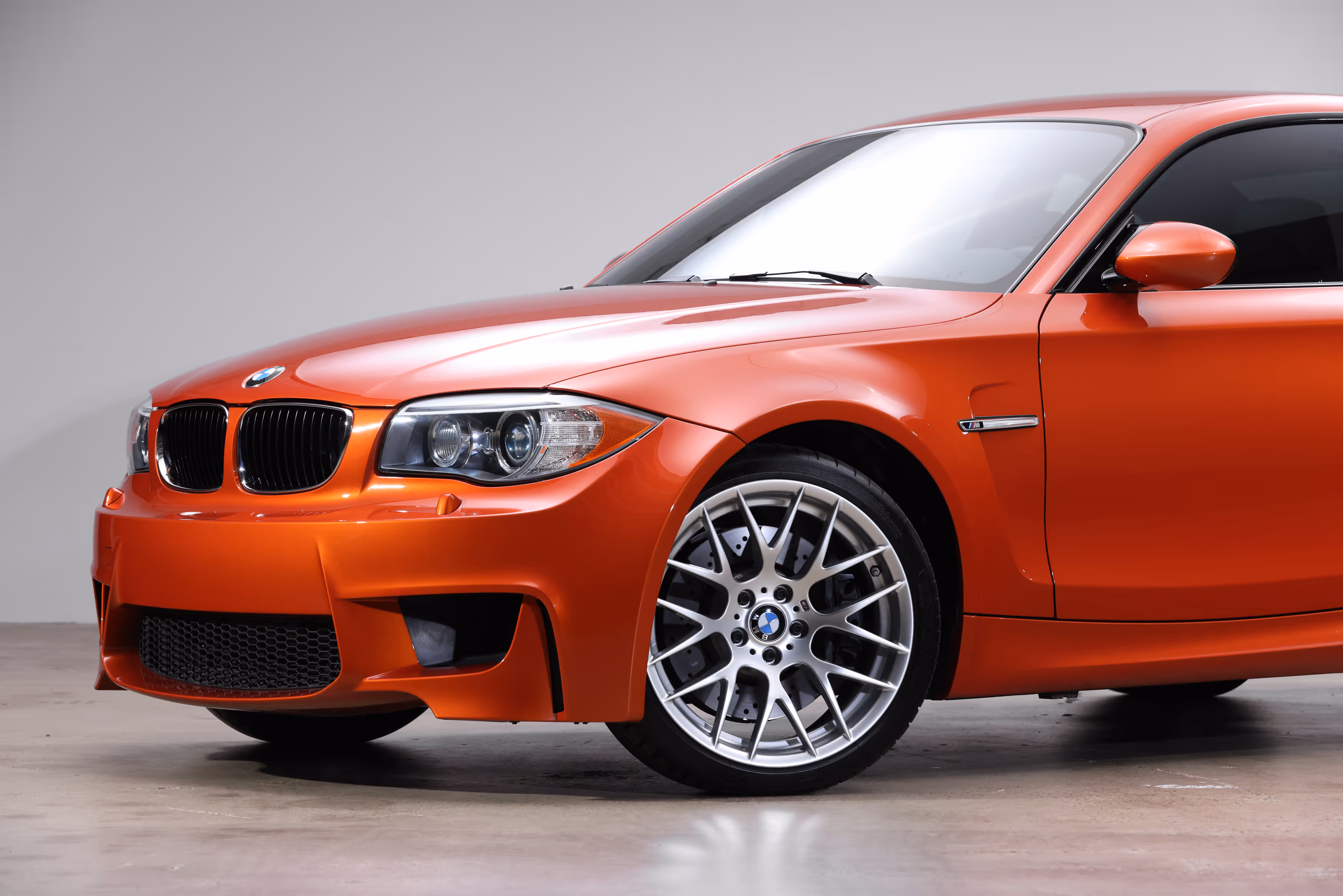 This 2011 BMW 1M is finished in the launch color of Valencia Orange over black leather and Alcantara interior with orange stitching. If you want a 1M that is in essentially factory-fresh condition, this is the example for you. Showing just 14,643 miles at the time of cataloging, this car has been lovingly cared for from new and cherished as the future collectible that it is. Delivered new to Brownwood, TX, in June of 2011, this 1M car has been under the care of one owner until it arrived at EAG in March 2018 when it had 5,991 miles. Although the 1M was offered in a few different colors, Valencia Orange is by far the most iconic choice and shows off the fender flares' unique lines and revised front and rear bumpers. The inside of a BMW 1M has a strong focus on driving, and all cars are fitted with the same Black Dakota leather with orange deviated stitching throughout. Although there is a screen in the center stack, it sits far enough back on the dashboard to not be in the driver's face while still providing the information you need for the infotainment system. A simple gauge cluster with a subtle Alcantara hood houses a large tachometer and speedometer, along with a small screen to display a car’s vitals. On the multi-function steering wheel, there is an “M” button, which, when pressed, alters the parameters of the stability and traction control to allow the driver to have even more fun behind the wheel.