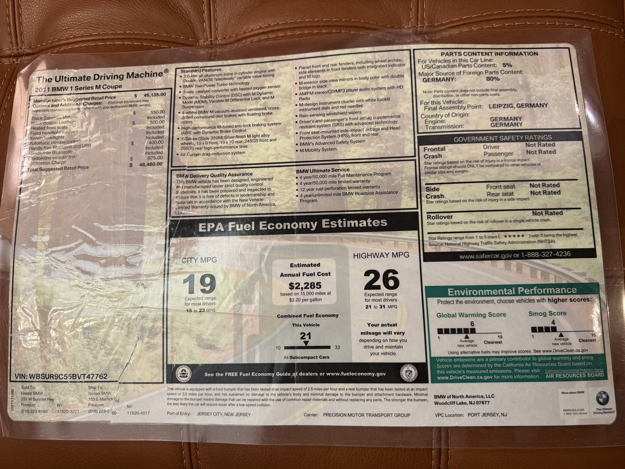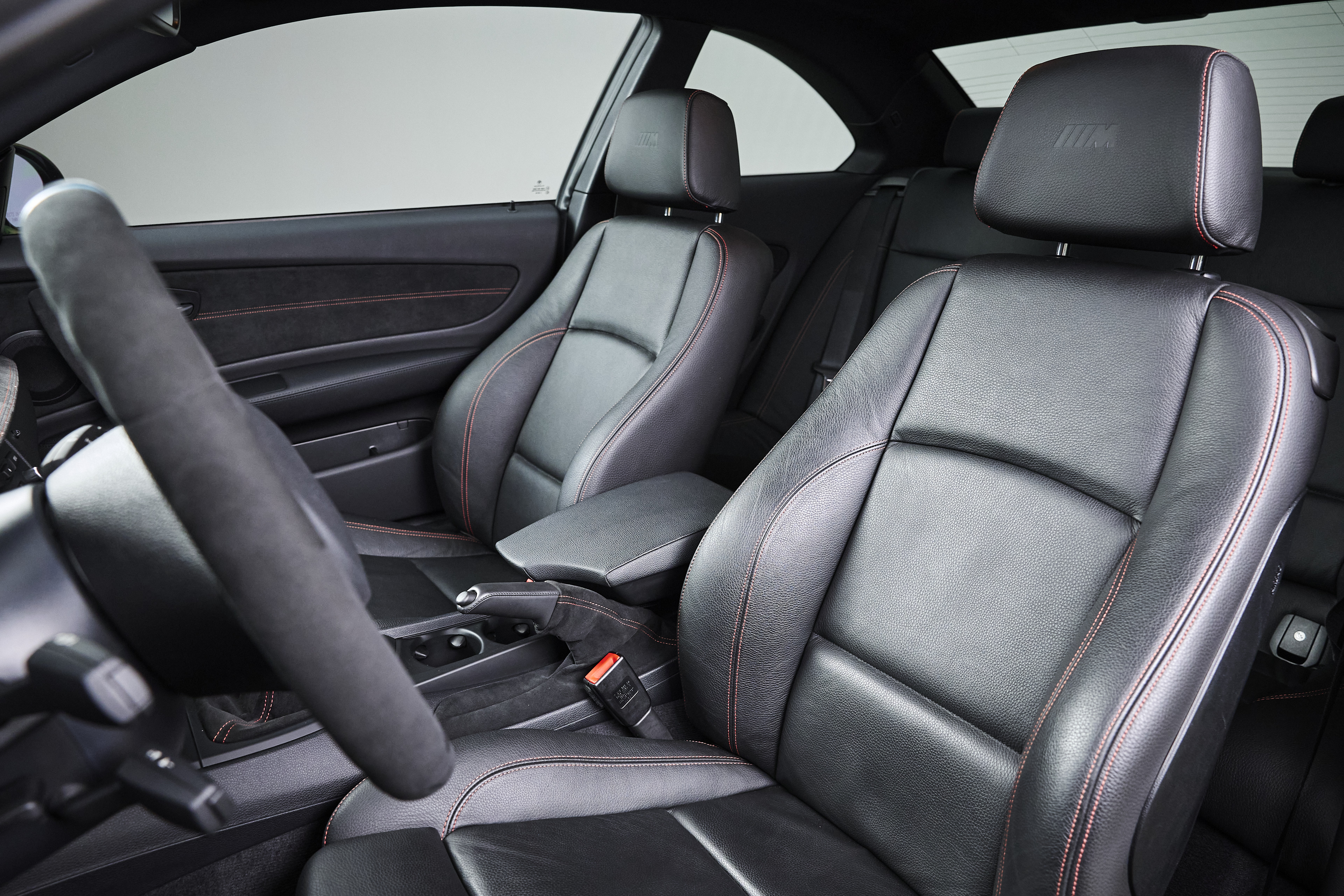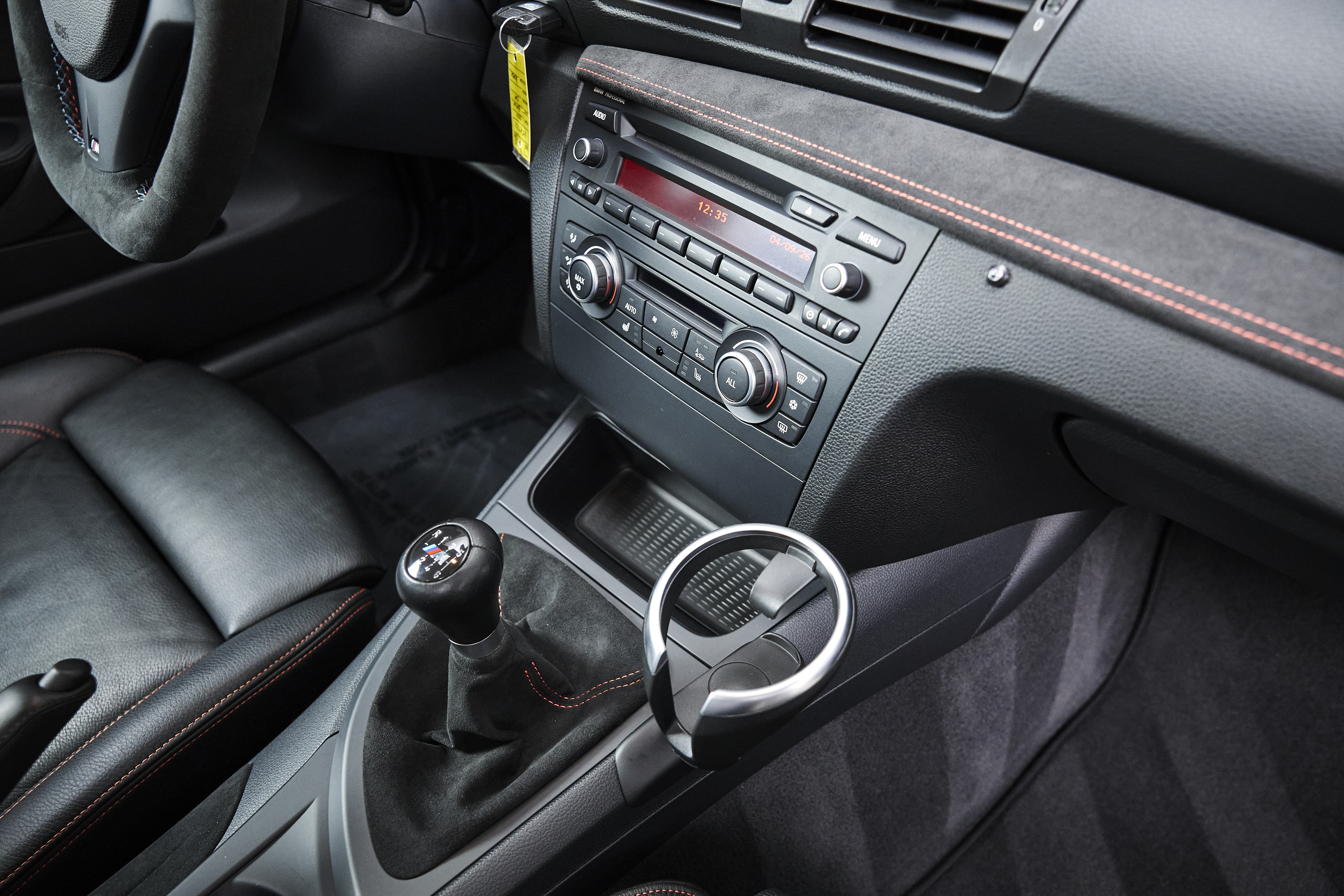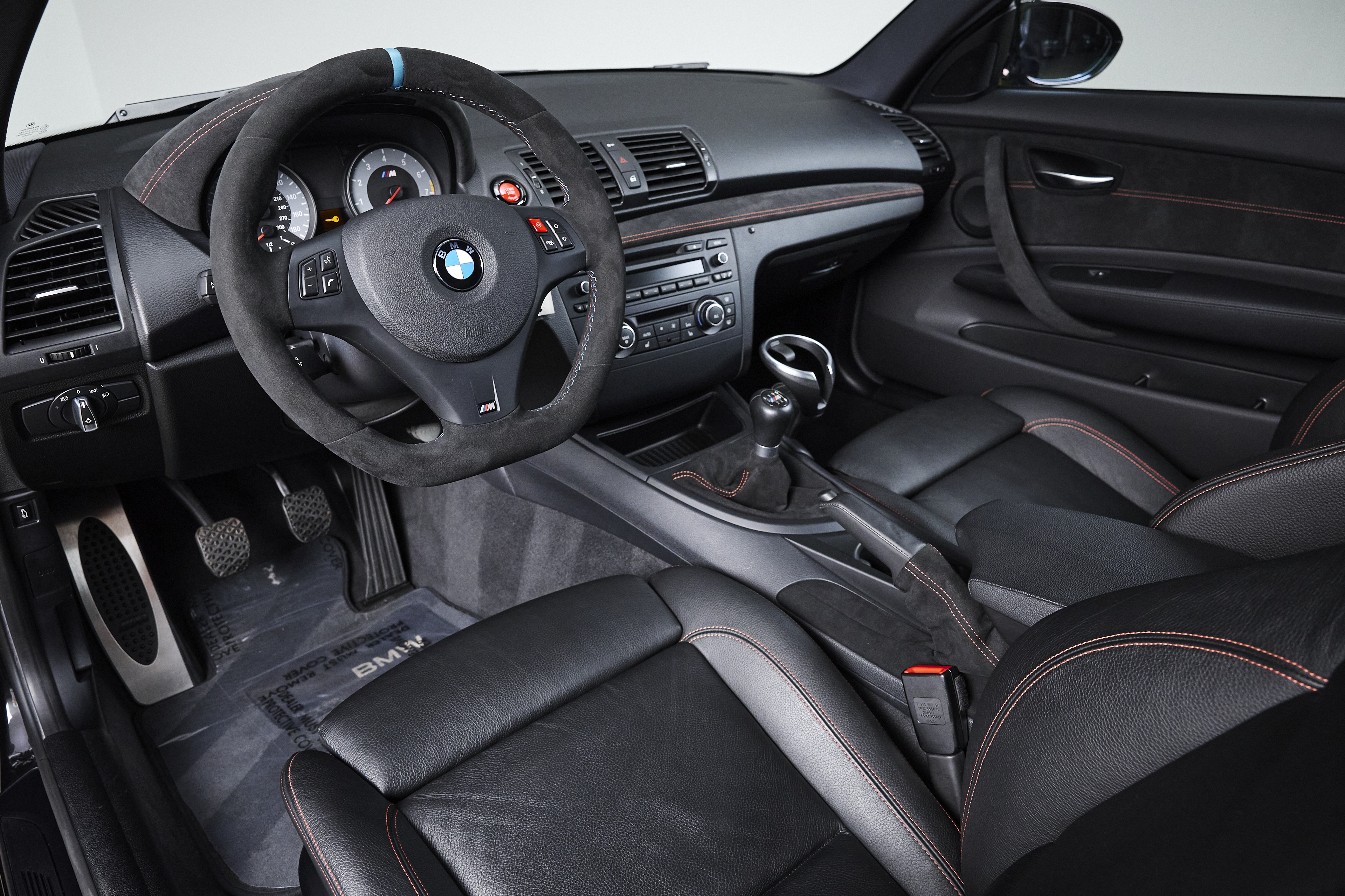This 2011 BMW 1M is finished in Black Sapphire Metallic over Black Boston leather and shows just 9,809 miles. The exterior presents exceptionally well, with deep gloss and sharp body lines that highlight the 1M’s signature flared fenders. Inside, the cabin remains clean and well preserved, featuring a desirable “single hump” configuration (no iDrive) along with manual sport seats and heated seating, offering a simplified, driver-focused interior layout.