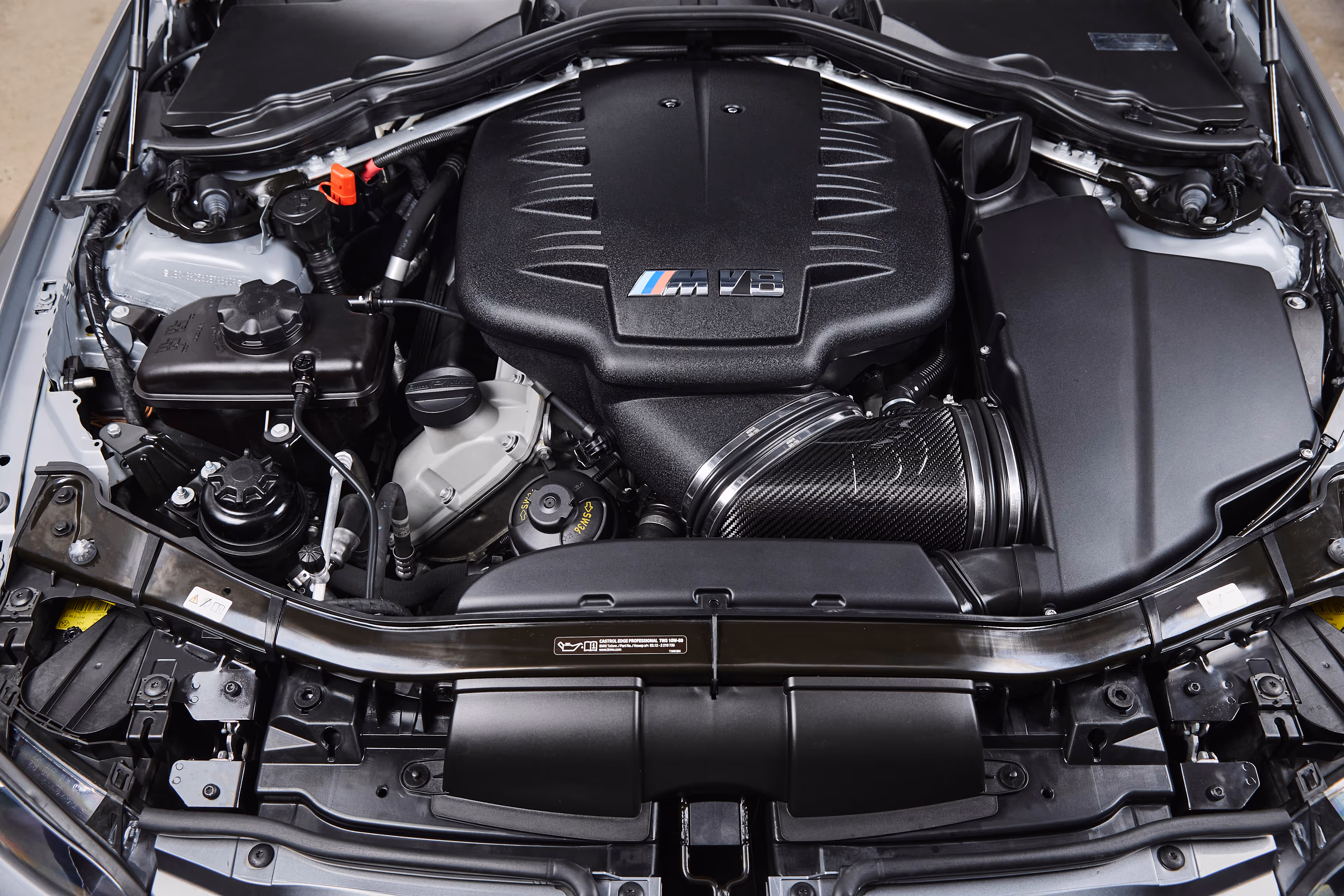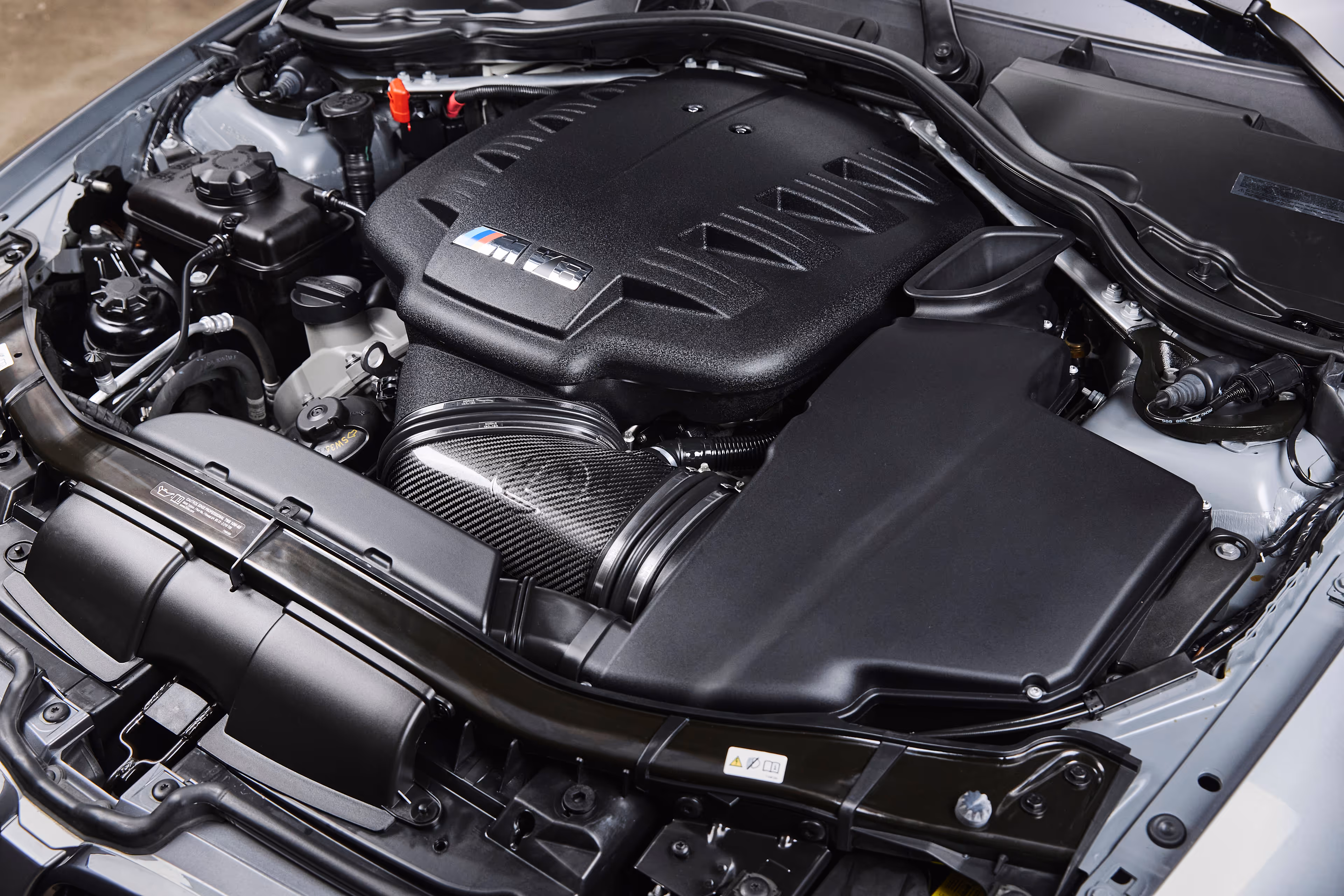 This 2012 BMW M3 is finished in Space Gray Metallic over Black Nappa leather, a classic and understated pairing that complements the M3’s muscular stance and clean design. With just 22,222 miles, it presents as a well-preserved, enthusiast-owned example with tasteful OEM+ modifications. The exterior is enhanced by BMW M Performance carbon-fiber splitters and a matching M Performance rear spoiler, giving the car a subtle but purposeful edge without departing from factory character. Under the hood, a Dinan High-Flow Carbon Fiber Intake provides improved induction sound and a clean, OEM-quality appearance.